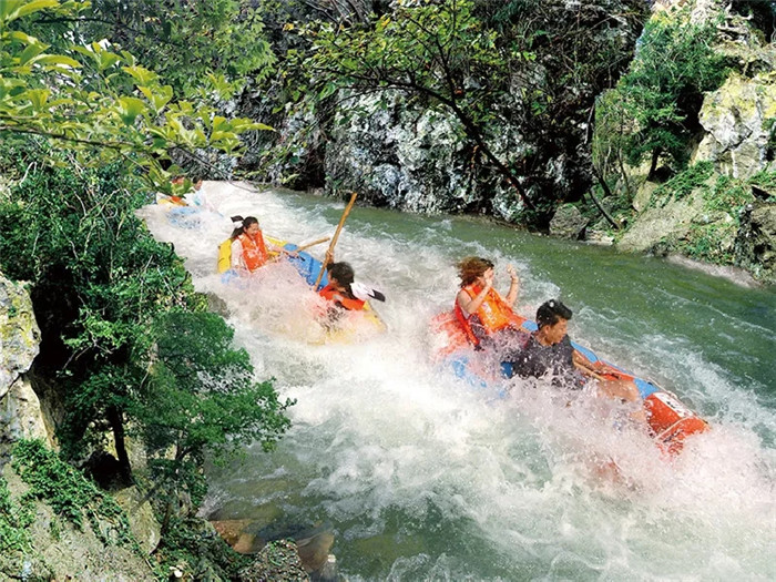 3.鴛鴦溪漂流:湖北京山鴛鴦溪發(fā)源于大洪山南麓的白龍池,素有“九曲鴛鴦溪、十里水畫廊”的美稱,景區(qū)內(nèi)峽險(xiǎn)谷幽,水碧林翠,鳥語(yǔ)花香,溪水在九曲峽谷中蜿蜒,兩岸高山峻谷奇異俊美,懸?guī)r怪石玲瓏,溢彩滴綠的天然樹林,古香古色的亭臺(tái)樓閣,遒勁有力的摩崖石刻,令人流連忘返。